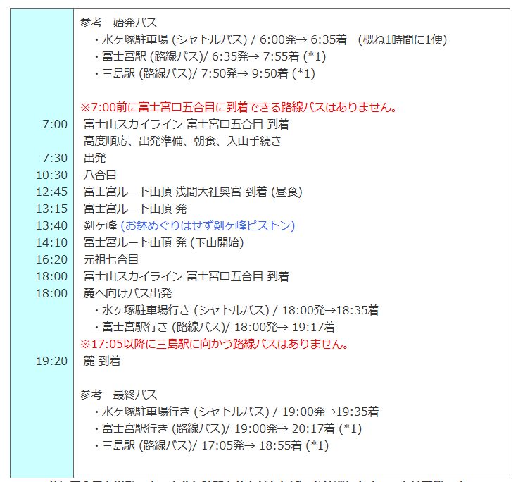 富士登山オフィシャルサイトにも、以下のように『日帰り登山モデルルート』の記載があります👇