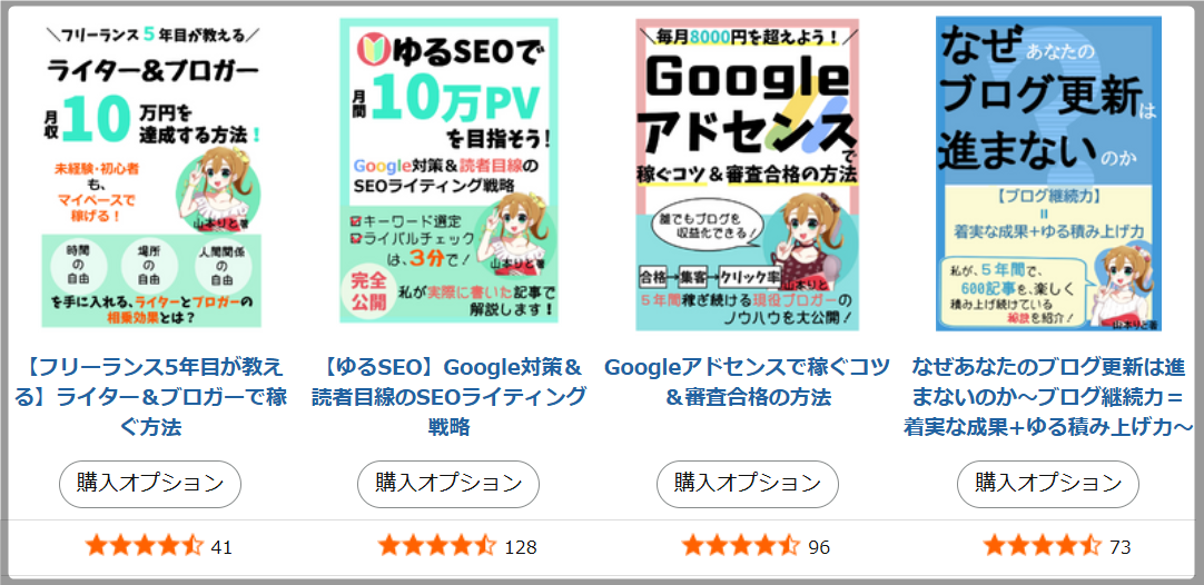 月間18万PV&収益6桁を達成した山本りとのリアル体験談が4冊の電子書籍になっています↓↓